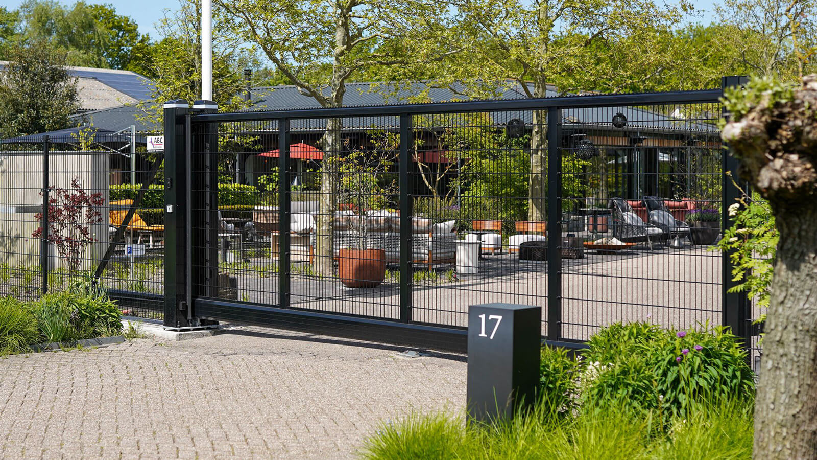 De toegang richting de showroom is nu goed beveiligd, en de inrit naar het opslagterrein heeft dankzij het nieuwe hekwerk ook een mooi en verzorgde uitstraling gekregen.