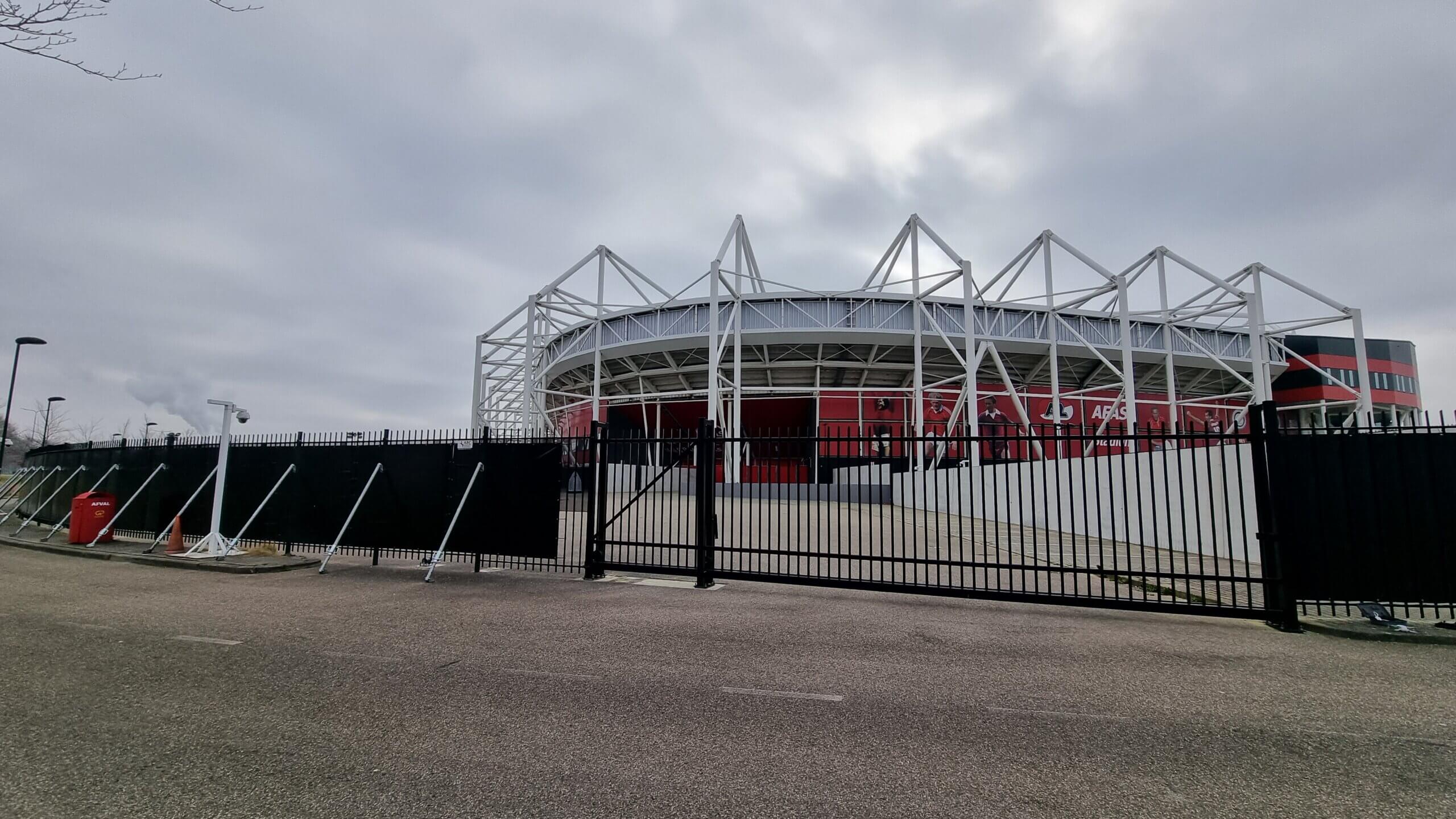 Ook bij het stadion is het terrein voorzien van hekwerk en schuifpoorten.
